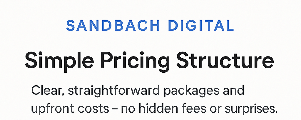 At Sandbach Digital, we believe great web design shouldn’t come with confusing costs or hidden surprises. That’s why our pricing structure is simple, transparent, and easy to understand from the very start.